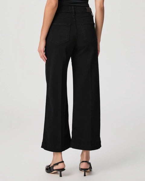 This modern high-rise wide leg has a slightly relaxed fit and an ankle length silhouette. Cut from TRANSCEND denim in our best-selling black shadow wash, this style is luxuriously soft with plenty of stretch and recovery to give it a flawless fit from morning to moonlight.