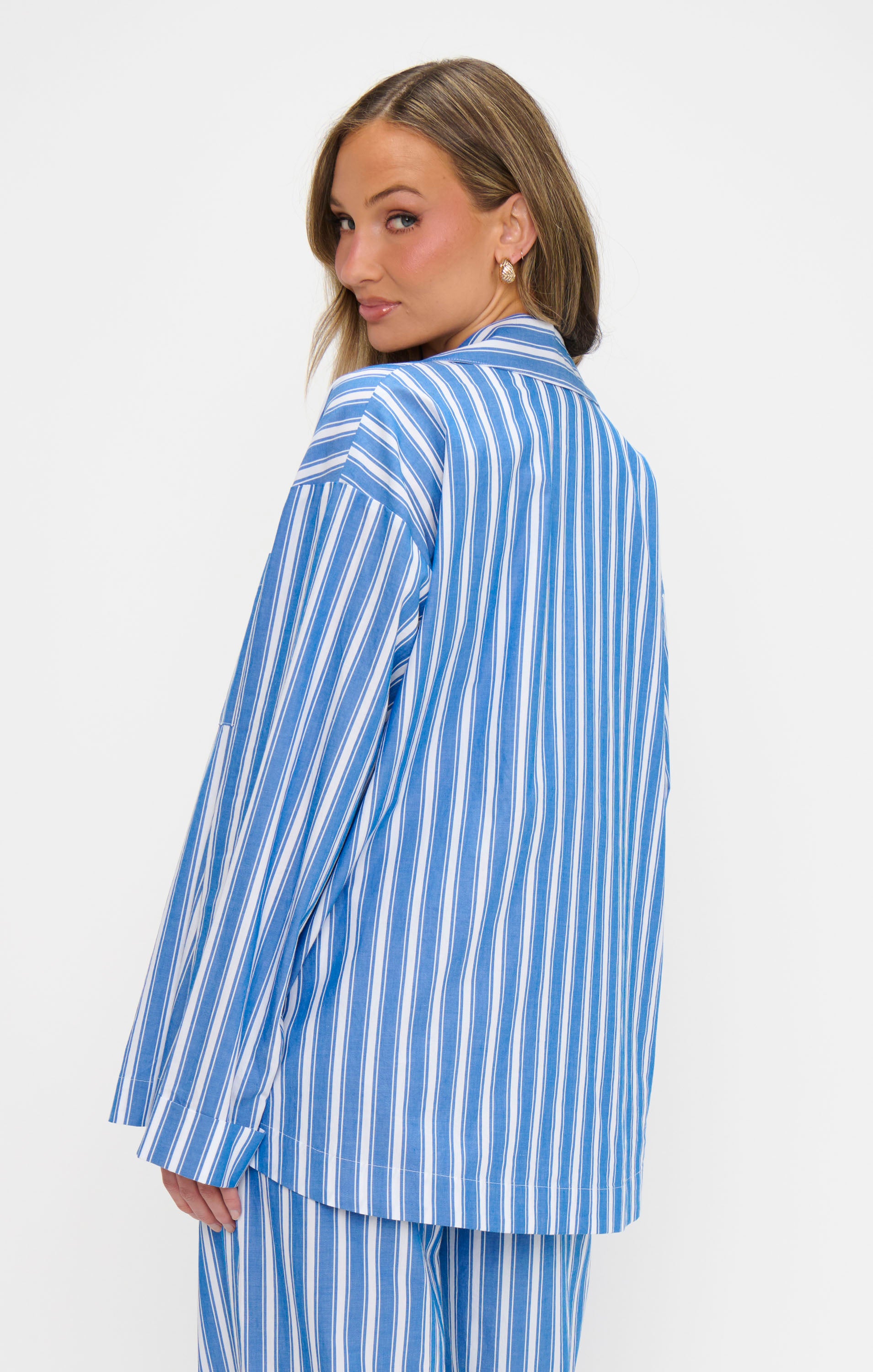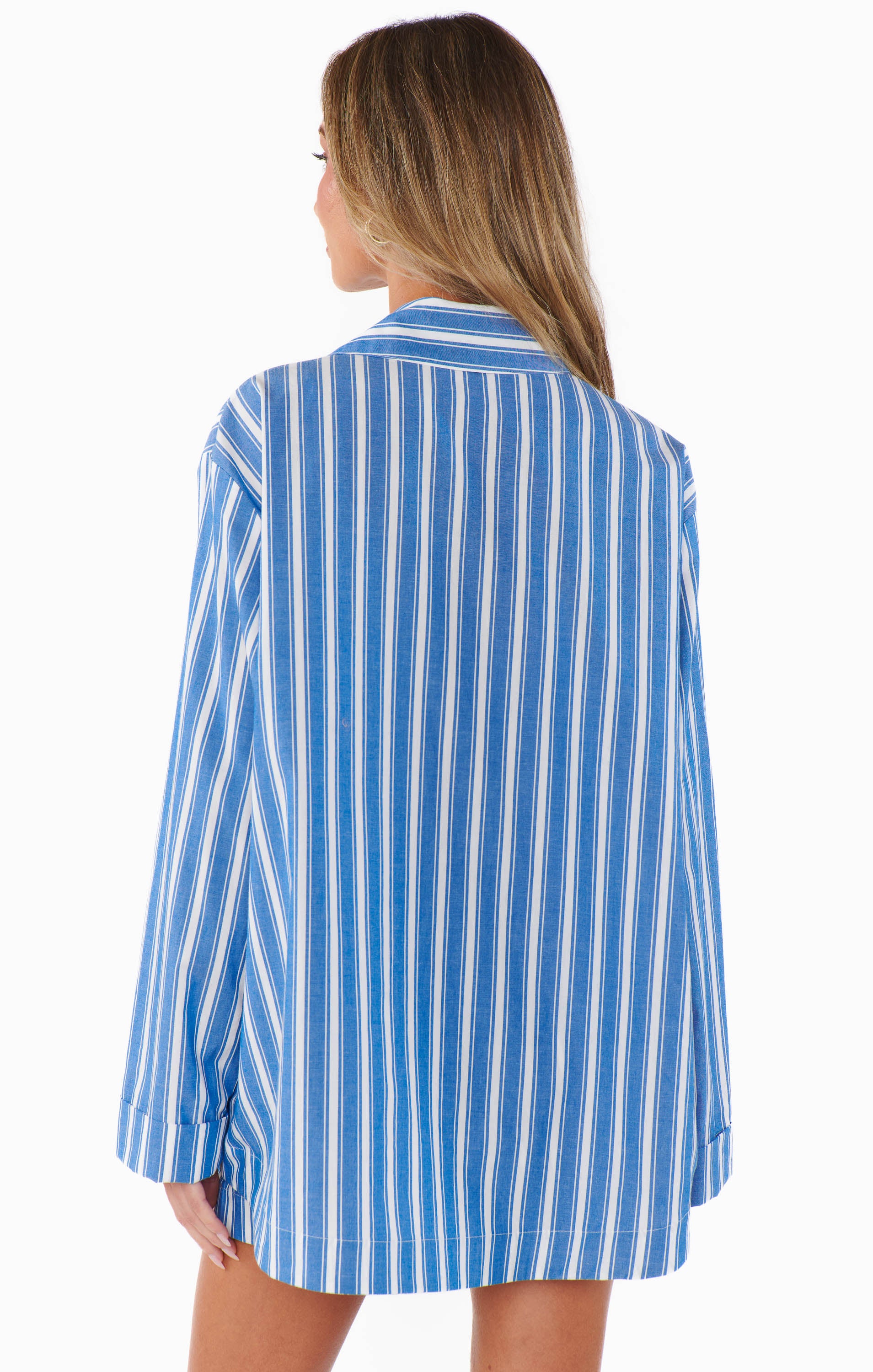 Long sleeve button down with stripes. Wear with the matching Max Boxer Shorts.