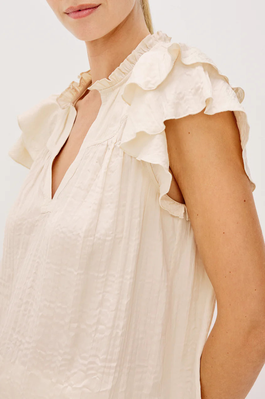 Cut from eye-catching cotton voile with ruffled sleeves and a plunging neckline, the Calista is a classic look that easily pairs with your favorite Rails denim.