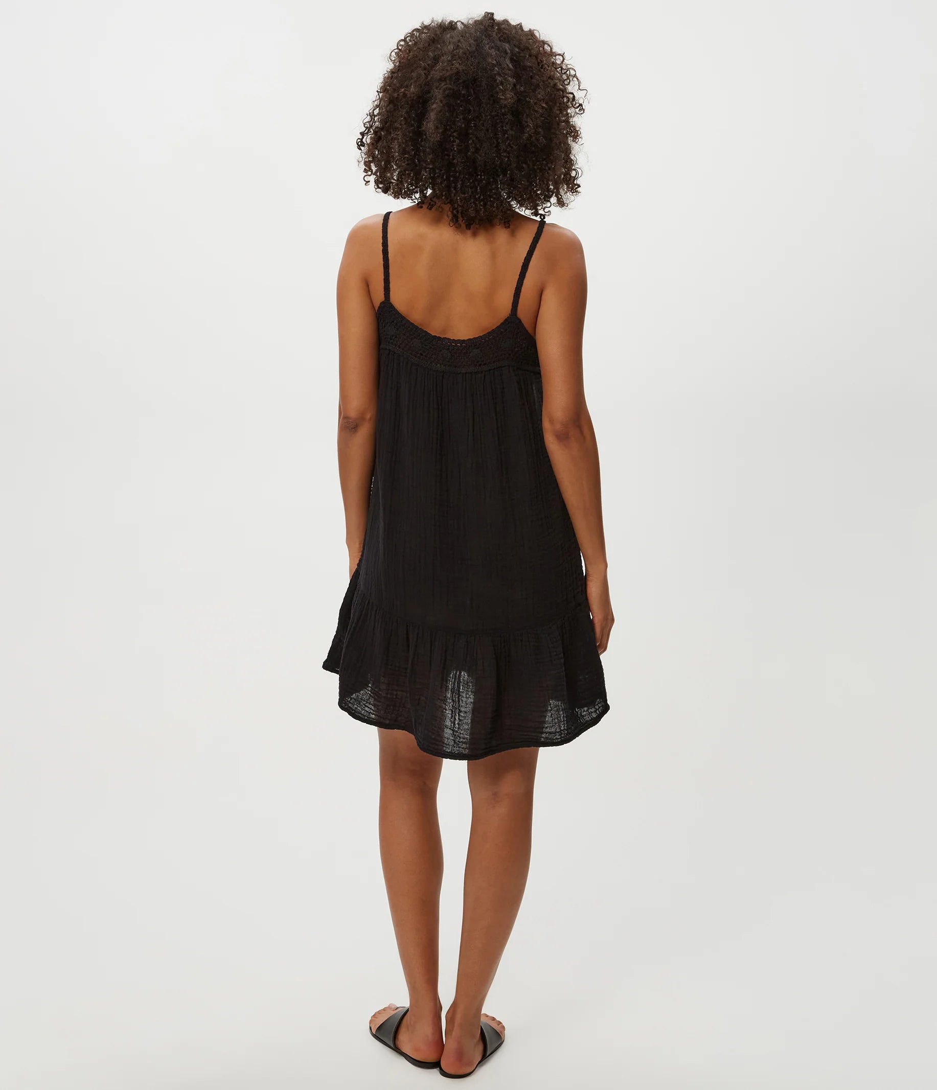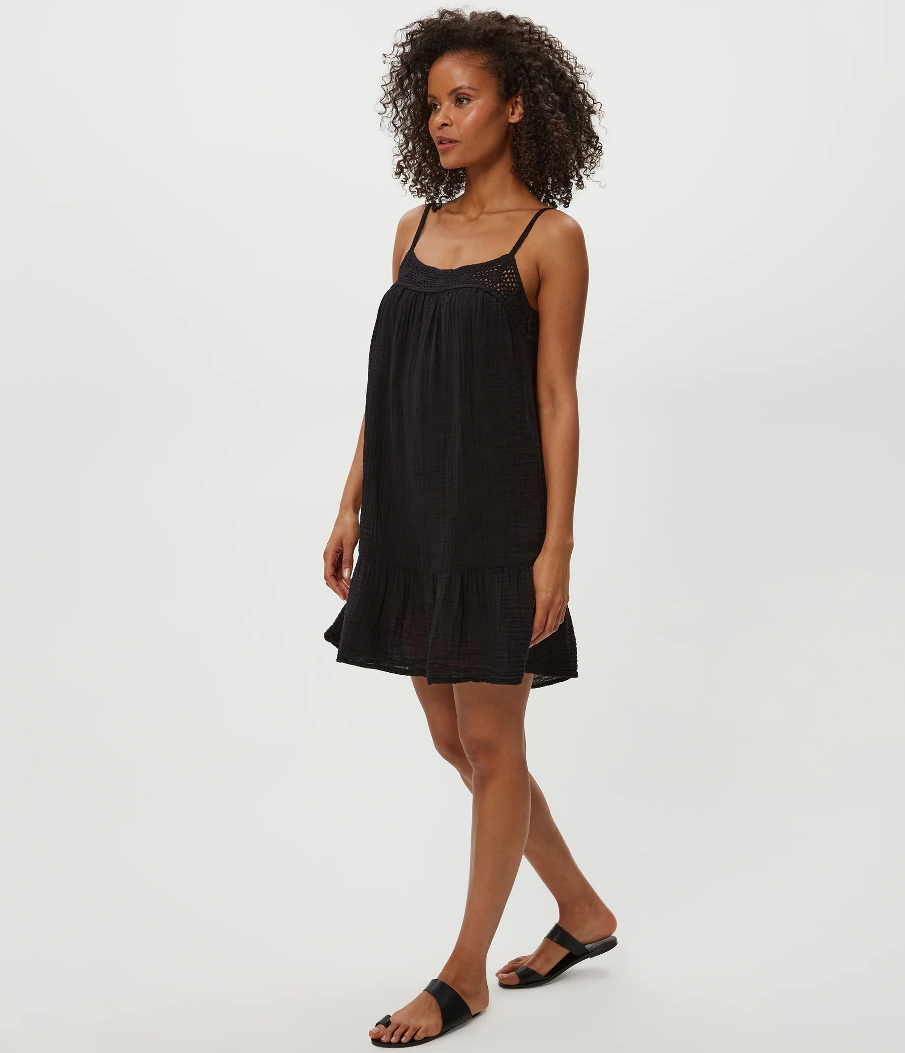 This easy fitting drop waist dress takes the guesswork out of getting ready. With a flattering square neckline and spaghetti straps, the Emree maximizes its cool factor with crochet trim and a flowy feel.