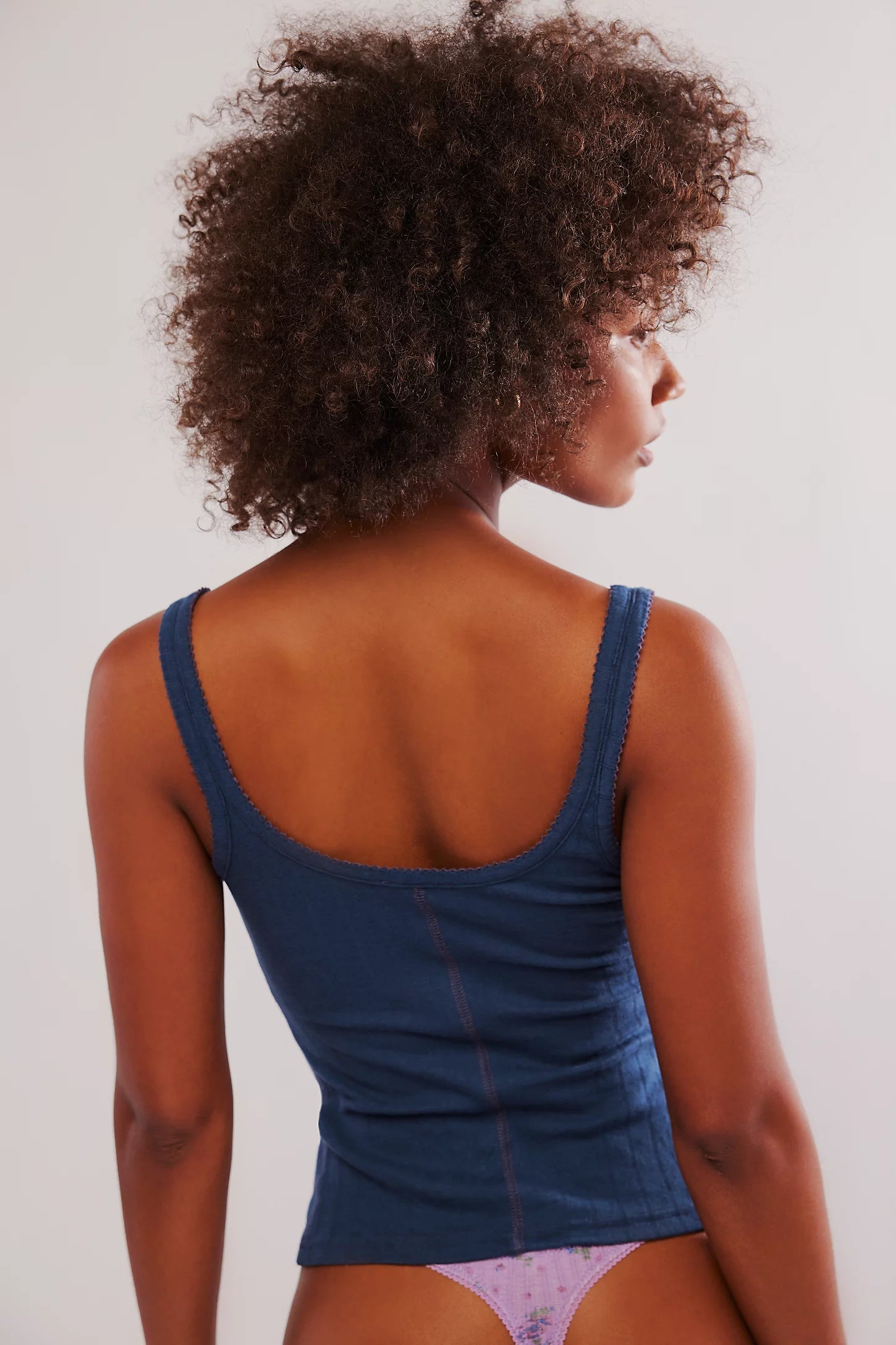 The perfect timeless tank, this sweet staple is featured in a soft cotton fabrication and button-front style with a wide square neckline and pointelle detail. Soft fabrication, lightweight design, wide square neckline, pointelle knit, scoop back, button-front closure, picot trim.
