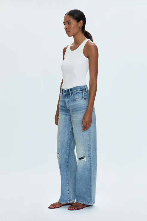 Effortless Cool meets Trend-Forward Detail. Embrace laid-back style with these slouchy, everyday jeans, your new go-to for comfort and a modern silhouette. Designed to sit comfortably low on the hips, they offer a relaxed fit that captures the season's must-have look. Crafted from rigid, non-stretch denim for authentic structure, the subtle distressing adds a touch of lived-in character and a hint of edge. Perfect for spring layering and casual styling, these jeans pair seamlessly with your favorite tees and sneakers for an effortlessly chic vibe.