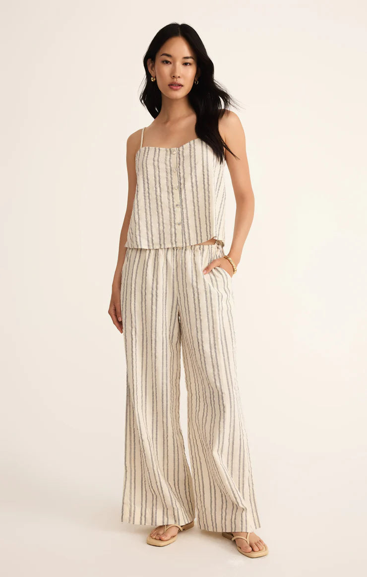 Made from Z. Supply's softly crinkled novelty textured stripe fabric, this full-length pant brings subtle texture to your everyday rotation. A high-rise, pull-on silhouette with a drawstring waistband and side seam pockets keeps it effortlessly comfortable and endlessly wearable. Wear with the matching Savoy Stripe Tank.