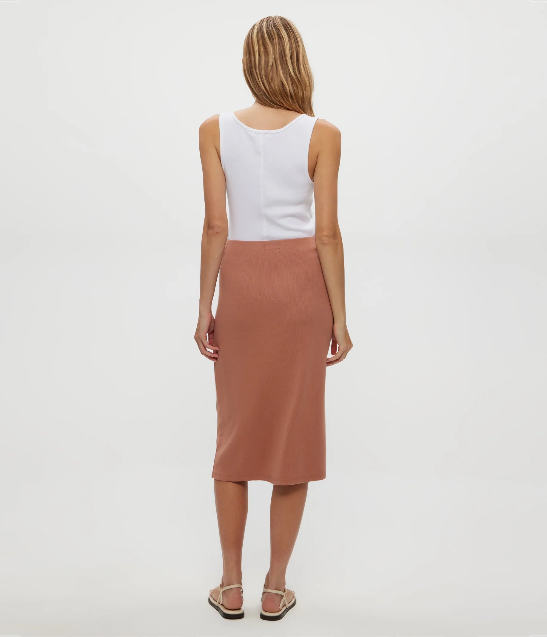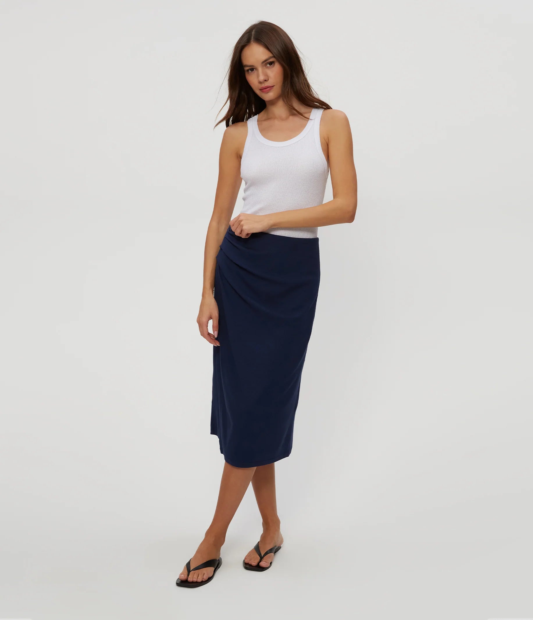 Every wardrobe needs this perfect Ultra Rib midi skirt. The Yeni is a body-hugging skirt that hits in all the right places. With an elastic waistband and gathered front detail, this skirt is not only super soft, but super flattering. Wear it with your favorite tank and dress it up or down—effortlessly.